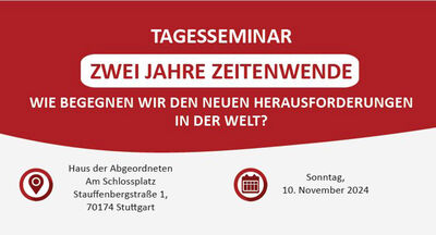 Der Arbeitskreis Internationales des SPD-Landesvorstands lädt zum Tagesseminar "Zwei Jahre Zeitenwende" ein. Dieses findet statt am